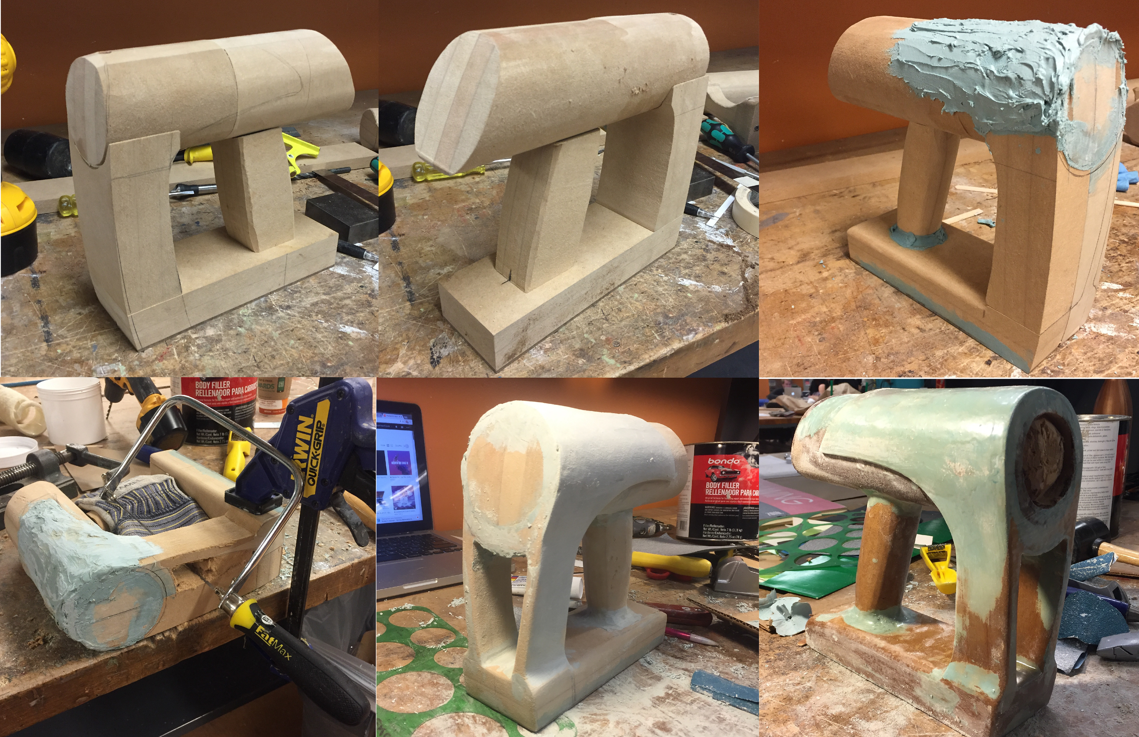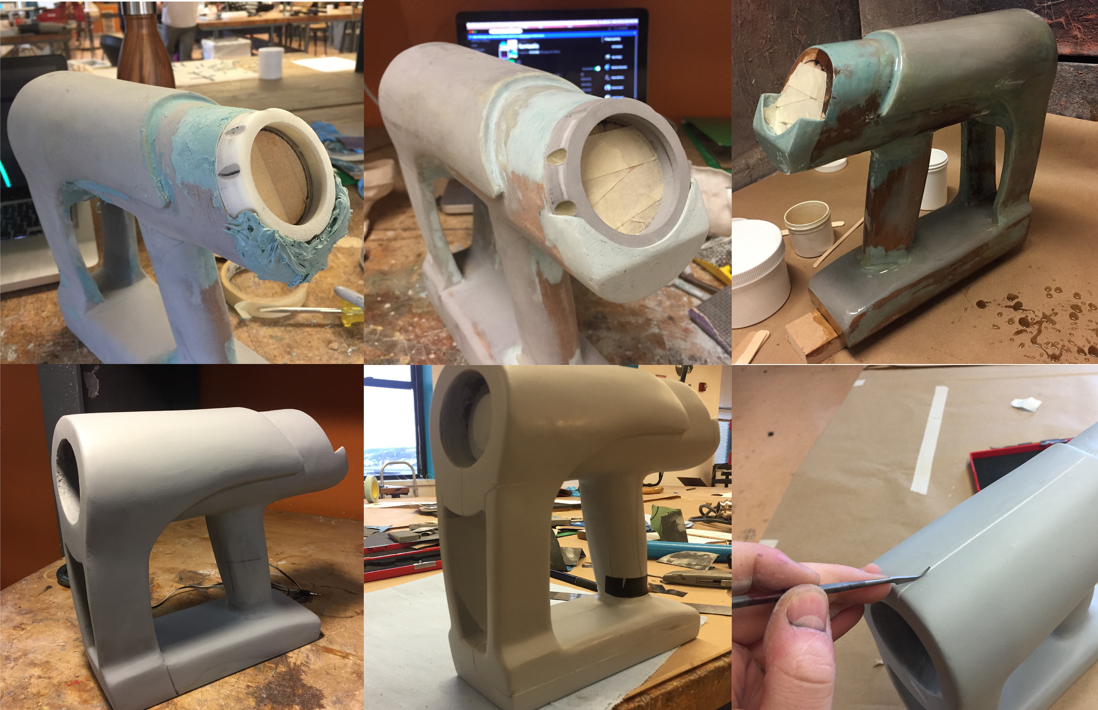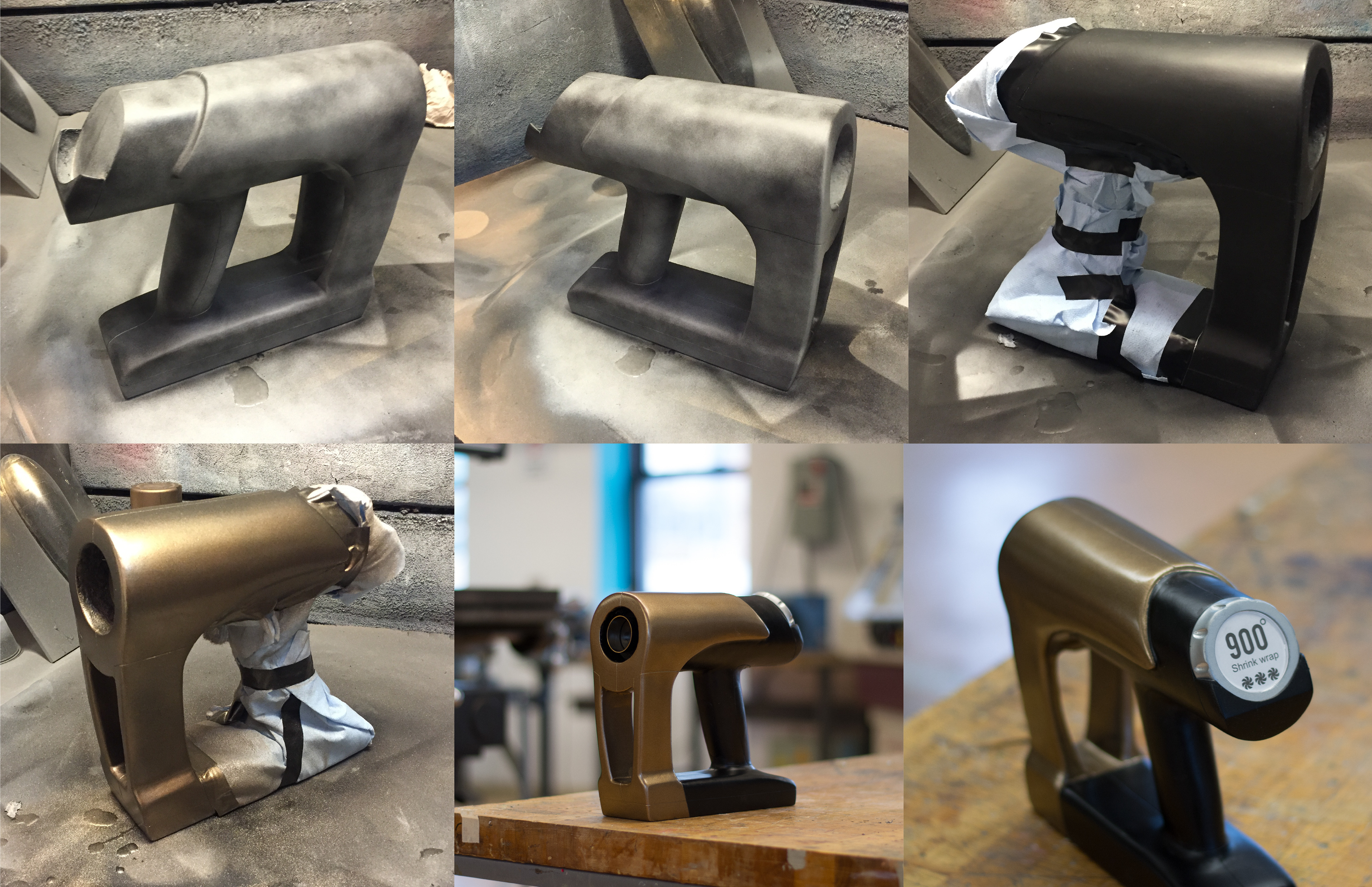 Building of final appearance model for a Product Design class in which we redesigned a heat gun. Model consists of MDF, body filler, polyester resin, 3D printed ABS plastic, clear extruded acrylic and acrylic enamel paint.