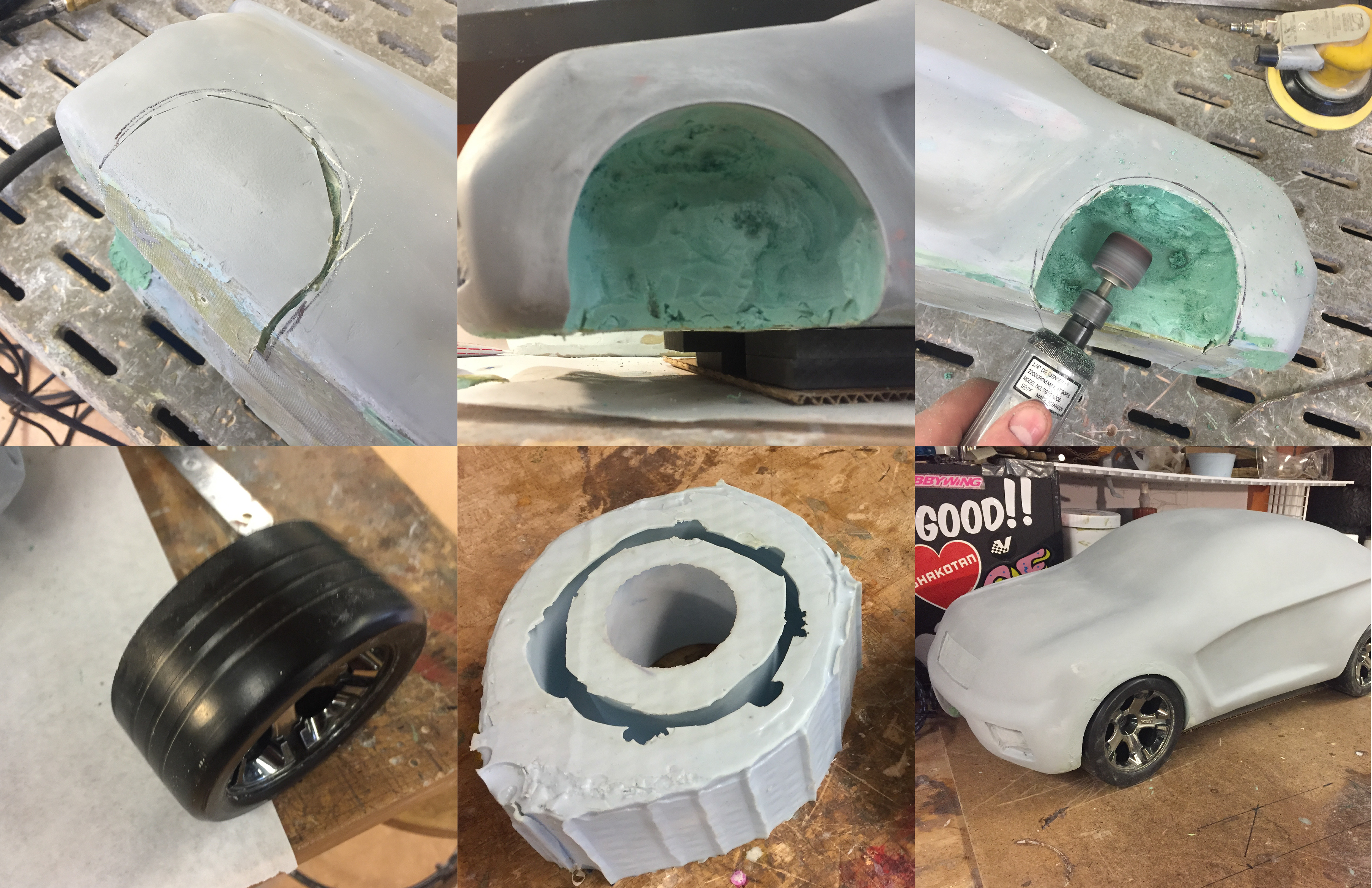 The tires were made by casting Easy-Flo into a circular container, lathing it and then molding it and casting 4 more.