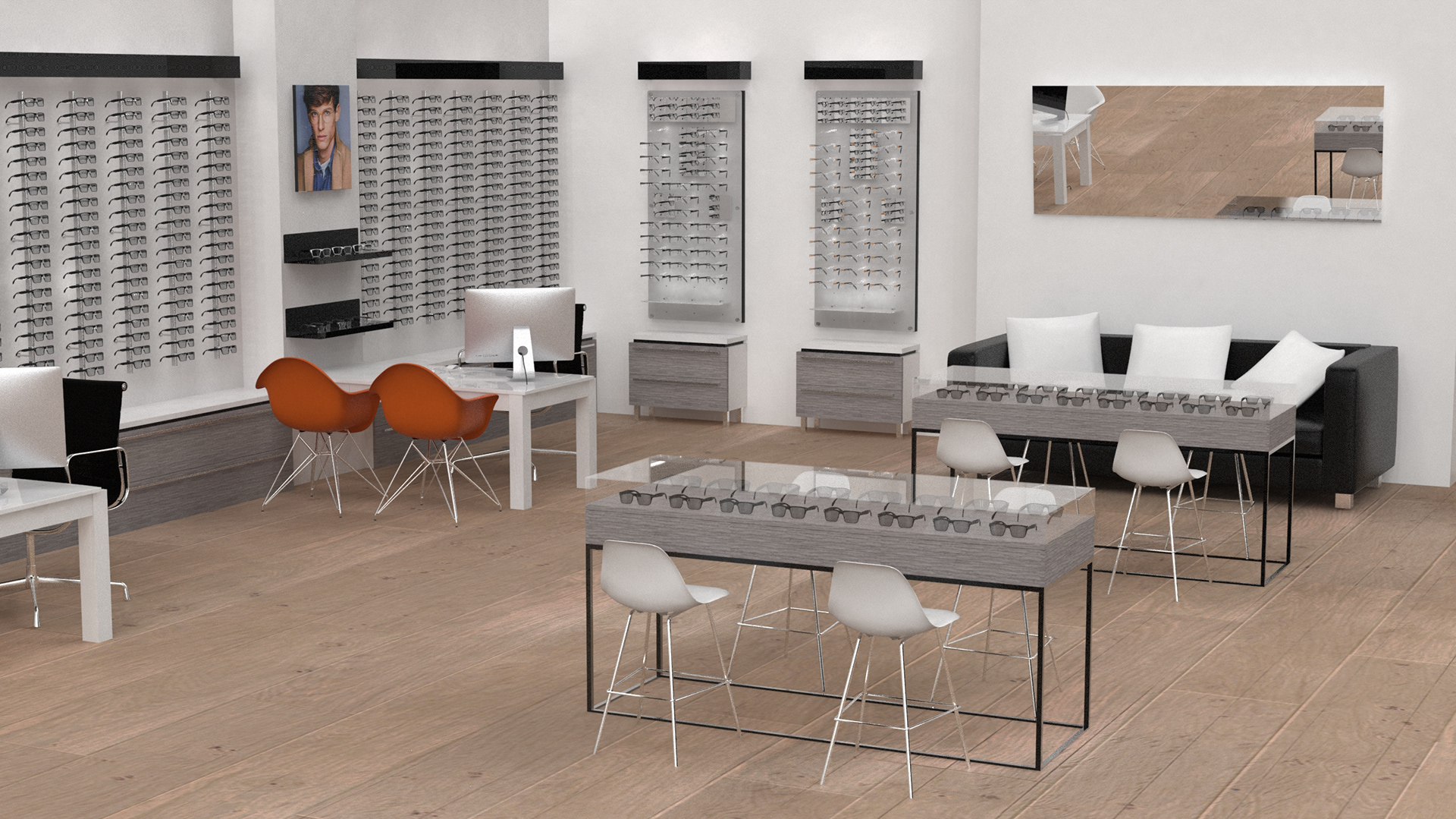 A large Optical Retail store client whom we do displays for came to us asking for a design refresh for their hundreds of new stores they would opening in 2020. We were asked to provide full store concepts as well as as modular floor and wall displays that could replace their current system of expensive, custom store to store layouts.